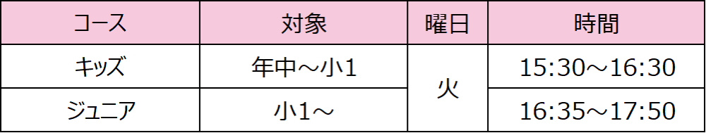 ※小学校1年生はキッズ・ジュニアどちらのコースでも選択できます。