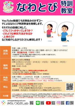 縄跳びの特別教室も同時開催いたします。