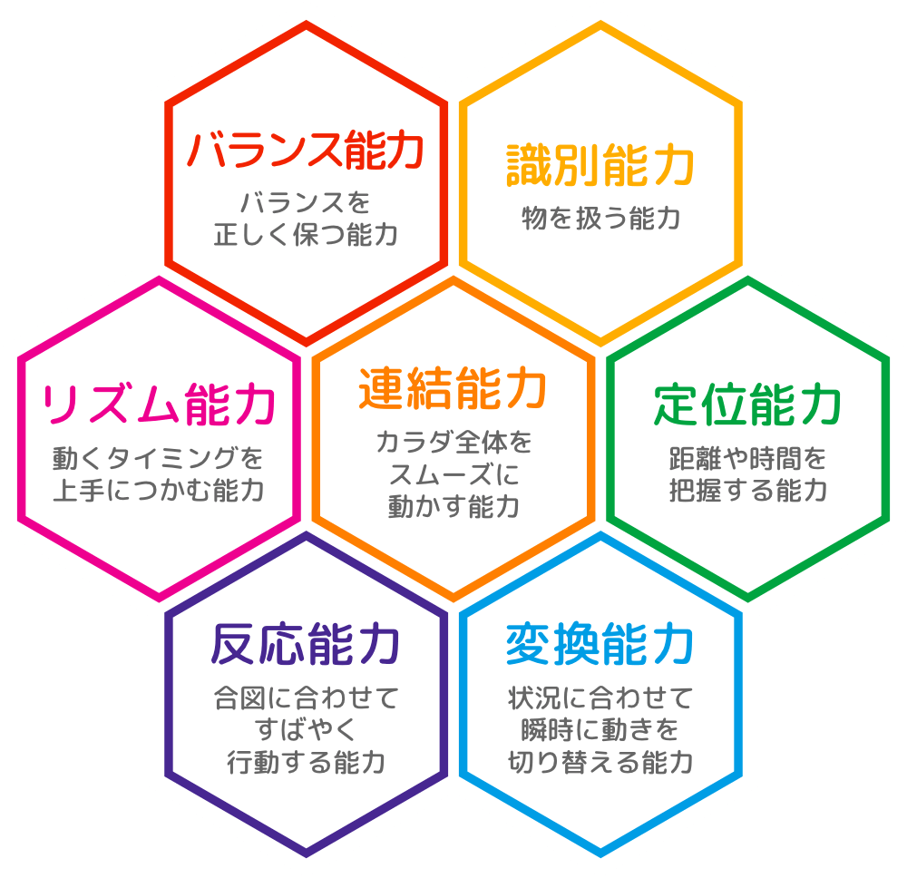 コーディネーション運動によって、運動に必要な7つの能力を身につけます。