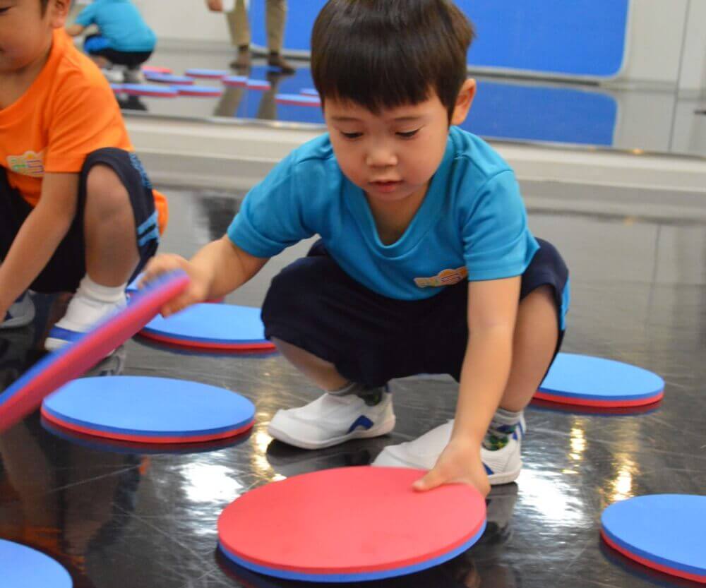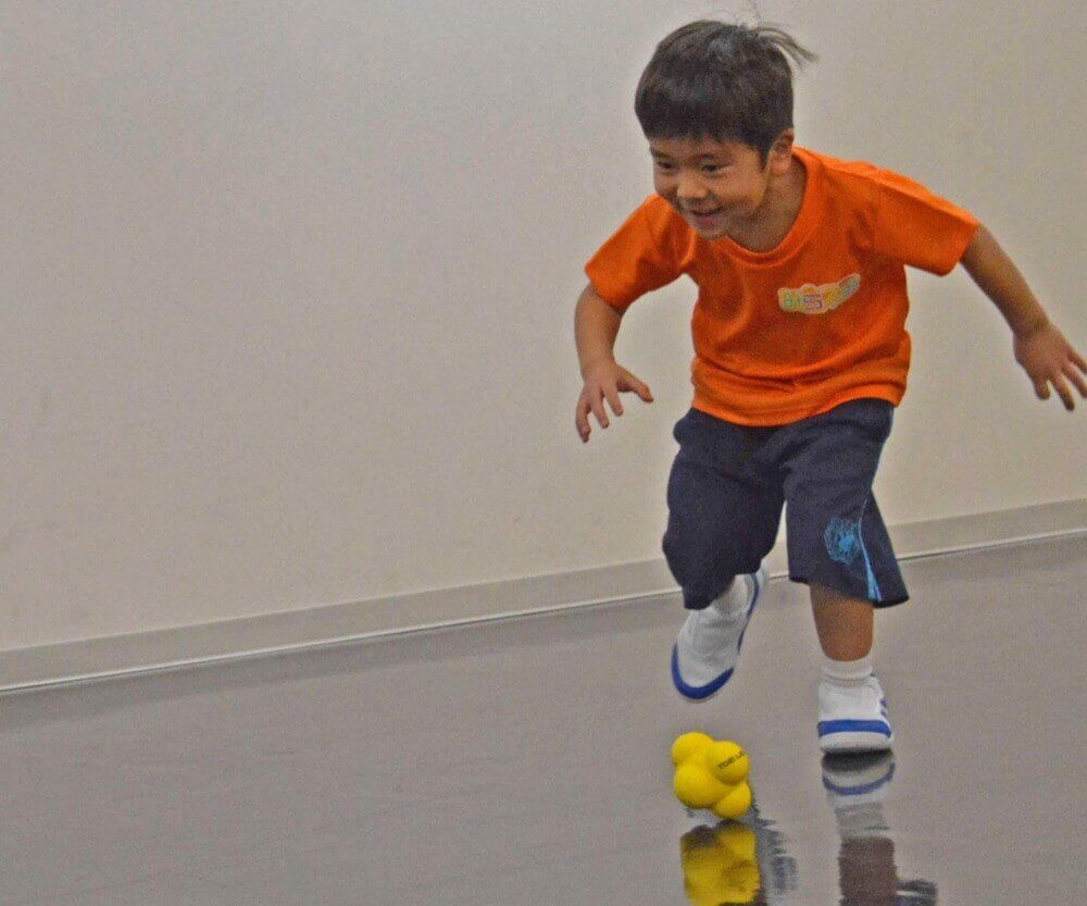 状況を目や耳など五感で察知し、それをアタマで判断し、具体的にカラダを動かす、といった一連の過程をスムーズに行う能力を高める運動を実施します。