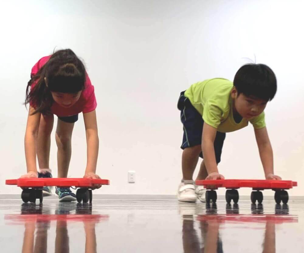 腕で体を支える力を養いながら足を速く動かします。普段使わない道具を使って楽しくトレーニング!